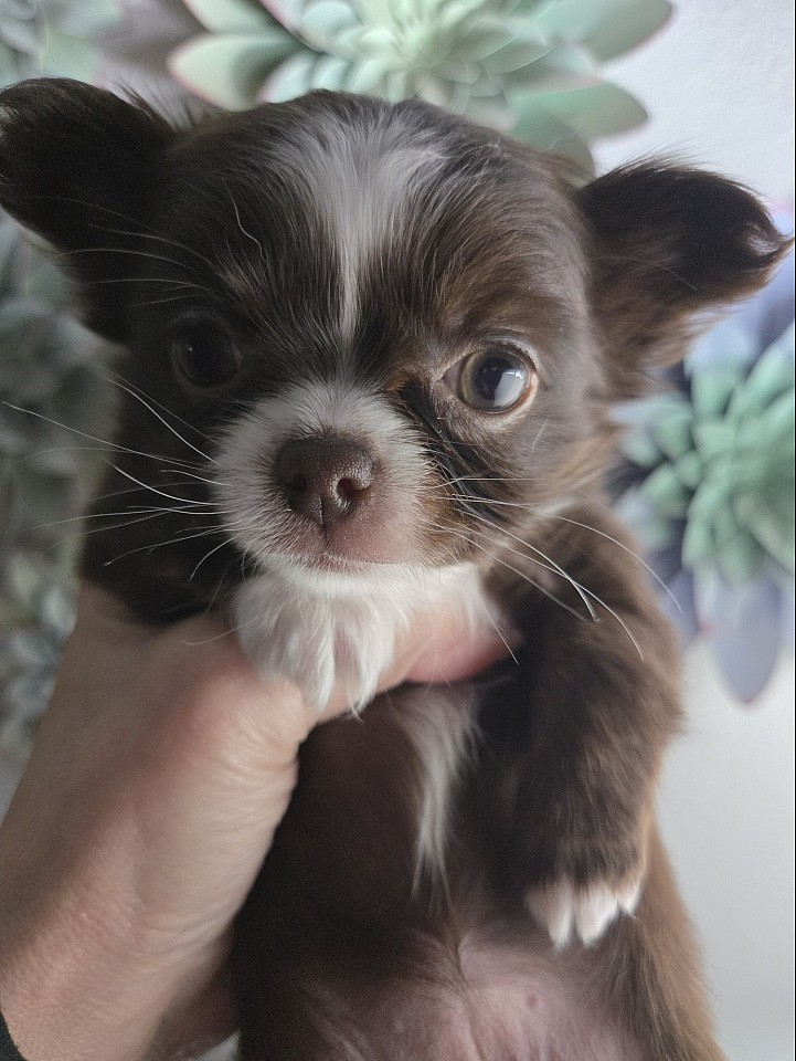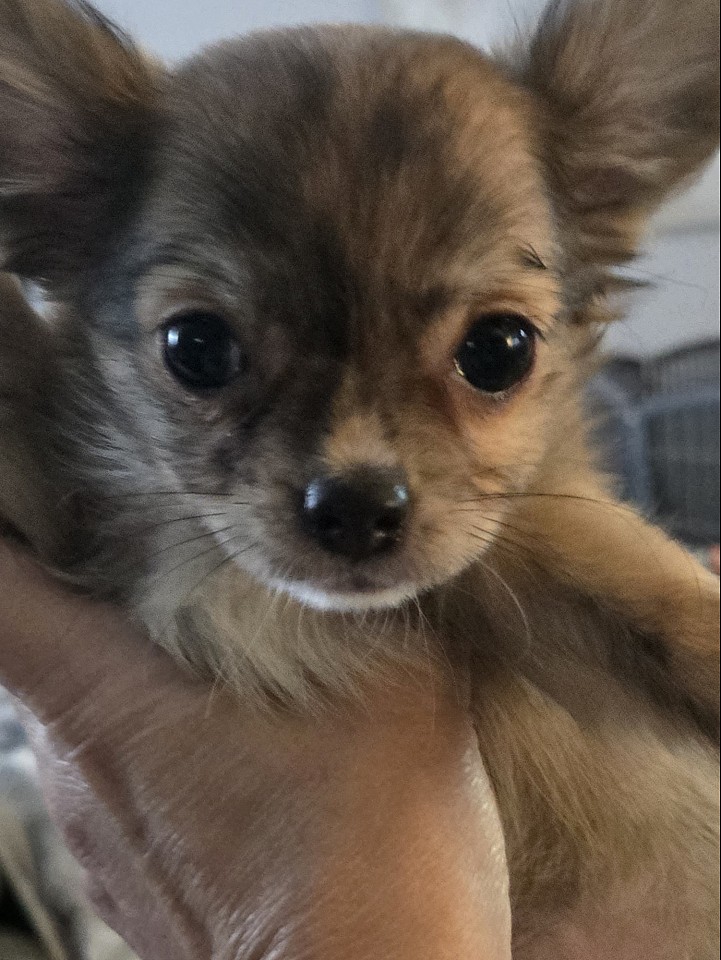 Poppy is sweet, quiet, loving, playful and curious. She loves to play with the other chihuahuas. She loves to sit on your lap for cuddles and snuggle. She is such a sweet girl. She has perfect conformation and comes from great Champion lines. We are so happy to have her join our program.