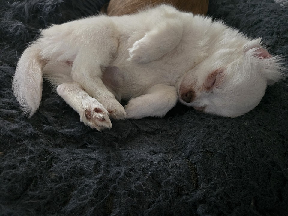 Dot is a precocious, sweet, smart, loving little lady. She is curious about everything and scared of nothing. She is fluffy little Polar Bear that loves to play and snuggle.